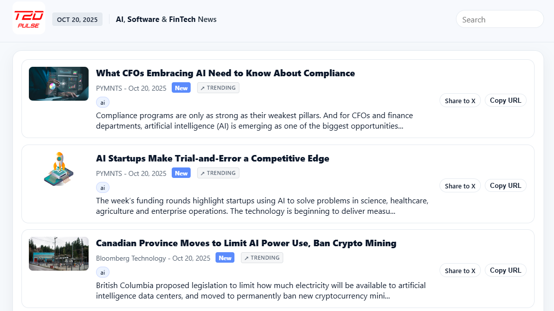 T2D Pulse - more content: We’ve added more content sources to T2D Pulse over the past several days (FinTech and AI in particular), along with trend analysis: HERE